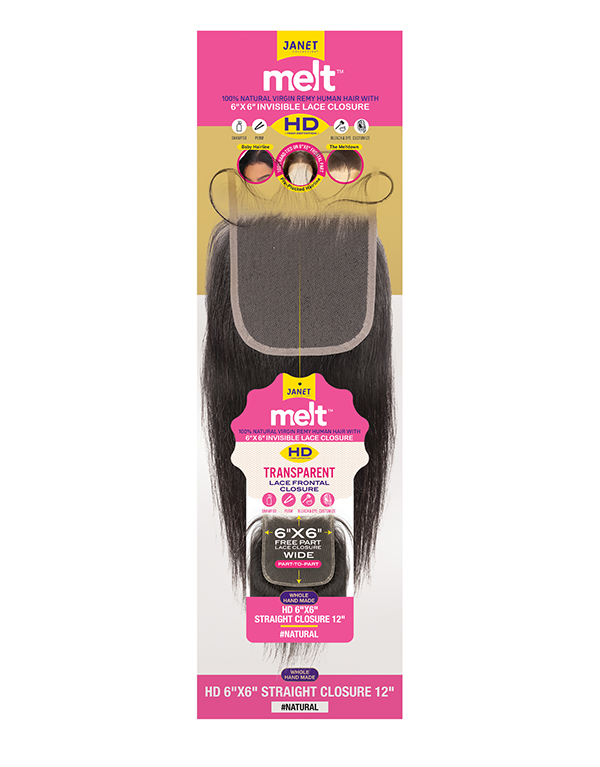 MELT 6X6 HD LACE CLOSURE STRAIGHT AVAILABLE LENGTHS: 10″, 12″, 14″, 16″, 18″ AVAILABLE COLORS: NATURAL
